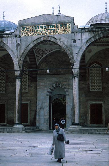 Inside the courtyard of the Blue Mosque.